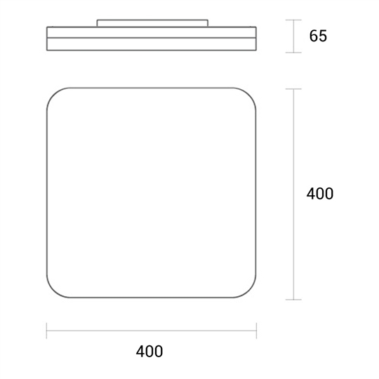 LxBxH= 400x400x65mm