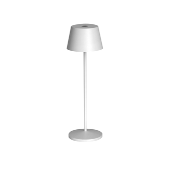 LED Akku Tischleuchte, inkl. Akku DC5V/1A und USB Ladekabel und Ladestation (ohne Netzteil), Einstellbare Lichtfarbe 2700-3000°K, Dimmbar an der Leuchte, Farbwiedergabe CRI 80, Lebensdauer bis 30000h L80 B20, Gehäuse aus Aluminium, Gehäusefarbe weiss RAL9016, Ausstrahlwinkel 100° mit microprismatischem Diffusor, für Umgebungstemperatur Ta: -10°...35°C, Schutzgrad IP65, Schutzklasse III, Normen: CE, Garantie: 5 Jahre.