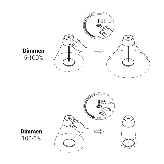 Die LED-Lampe hat eine Leistung von 2 Watt und eine Lichtstärke von 150 Lumen bei einer einstellbaren Farbtemperatur von 2700-3000 Kelvin. Die Farbwiedergabe von CRI 80 stellt sicher, dass Farben in ihrer natürlichen Schönheit erscheinen. Die ROXY Akku Tischleuchte ist inklusive eines Akkus und USB-Ladekabels + Ladestation (ohne Netzteil) ausgestattet. Sie kann einfach an der Leuchte selbst gedimmt werden, um die perfekte Helligkeit für jede Gelegenheit zu finden.