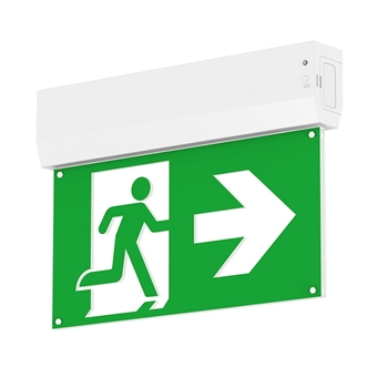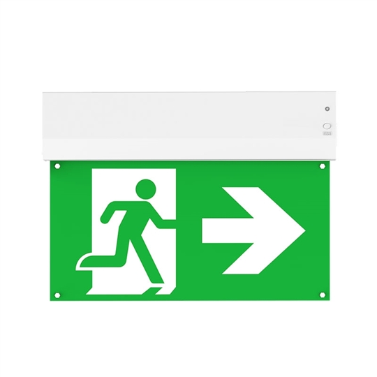 LED Notleuchte für Decken- oder Wandanbau, für Sichtweiten bis 30m auf beiden Seiten, mit Einzelbatterie Notdauer 3 Stunde, Automatischer Selbsttest, Dauer- oder Bereitschaftsbetrieb einstellbar, inklusive aller Piktogramme 2x, Leuchtenkörper aus Kunststoff, Gehäusefarbe weiss, Diffusor aus Plexiglas, mit LiFePO4 6.4V 600mAh, Aufladezeit 12 Stunden, Schutzklasse II, Schutzart IP20, Garantie 2 Jahre.