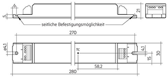 LxBxH: 280x30x21mm
