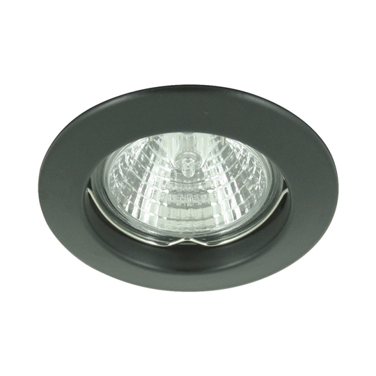 Einbauspot • starr • Gehäuse Aludruckguss • Gehäusefarbe schwarz • Befestigung mit Torsionsfedern • mit frontseitiger Haltefeder für Leuchtmittel • geeignet für Halogenglühlampen 12V/230V oder LED-Lampen Ø50mm • Lieferung ohne Zubehör (separat bestellen).