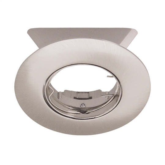 Einbauspot • schwenkbar 30° • Gehäuse Aludruckguss • Gehäusefarbe nickel gebürstet • Befestigung mit seitlichen trapezförmigen Blattfedern • mit frontseitiger Haltefeder für Leuchtmittel • geeignet für Halogenglühlampen 12V/230V oder LED-Lampen Ø50mm • Lieferung ohne Zubehör (separat bestellen).
