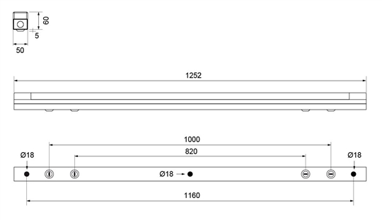LxBxH: 1252x50x60mm